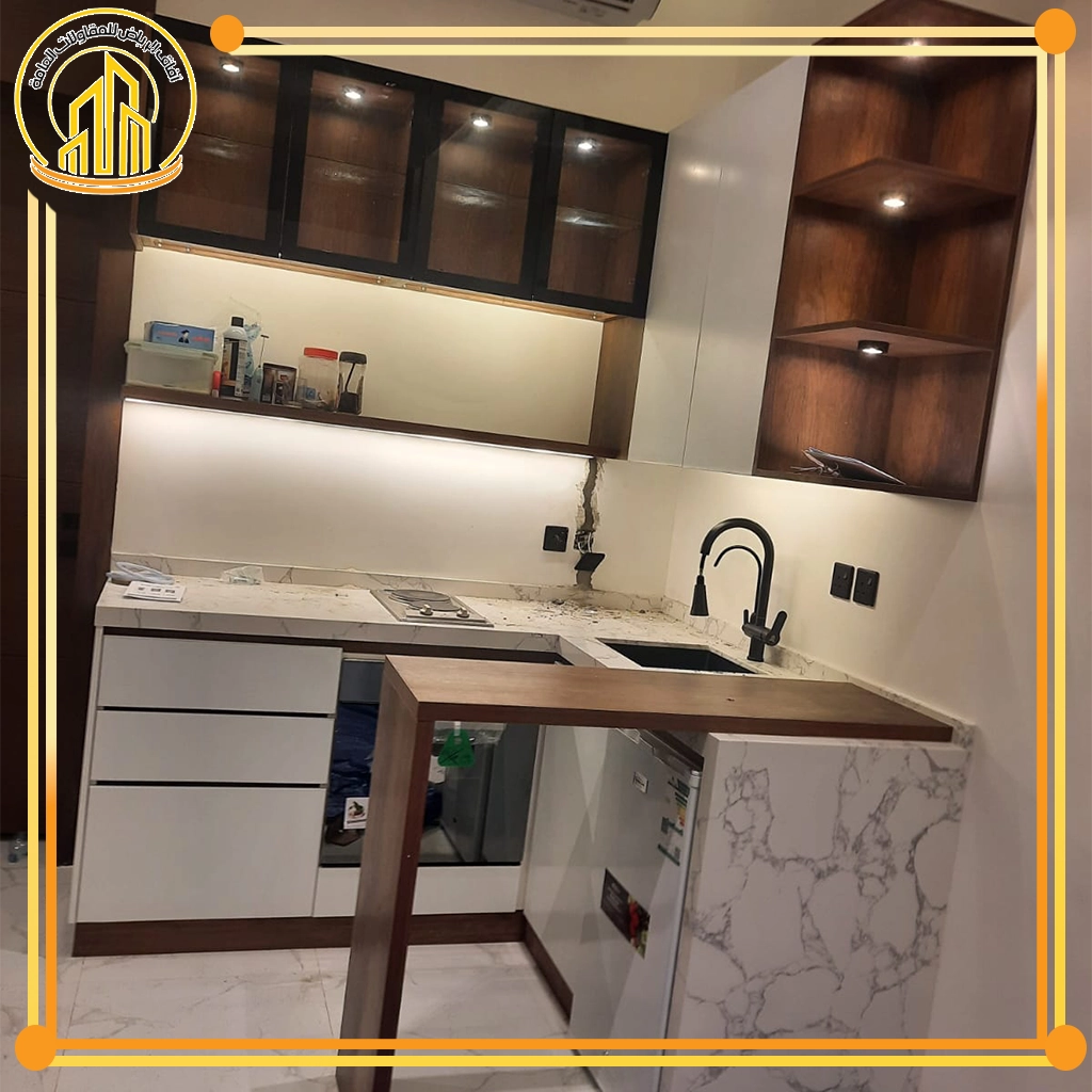 وإضافة إضاءة مخفية أسفل الخزائن لإبراز التفاصيل الجمالية. كما يمكن تغيير سطح العمل إلى رخام أو كوارتز مقاوم للبقع والحرارة، مما يمنح المطبخ مظهرا راقيا وعصريا.