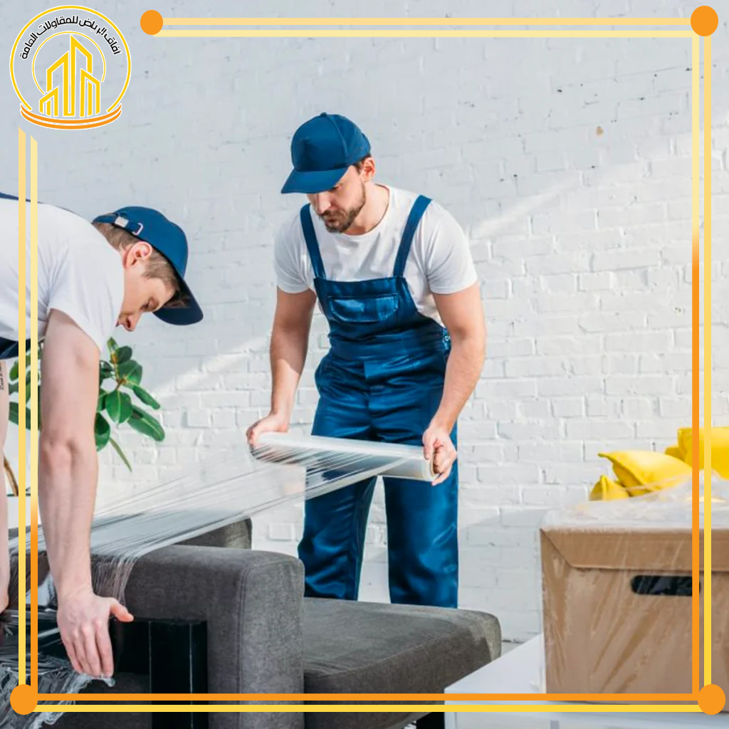 ويقوم العامل بإتمام عملية تغليف الاثاث بشكل جيد وصحيح لكي نضمن أن عملية النقل للأثاث قد تتم بشكل جيد ومتطور وبصوره صحيحه ودون أن يصيب العفش أي تلف أو اذي قد يسبب الي تلف العفش